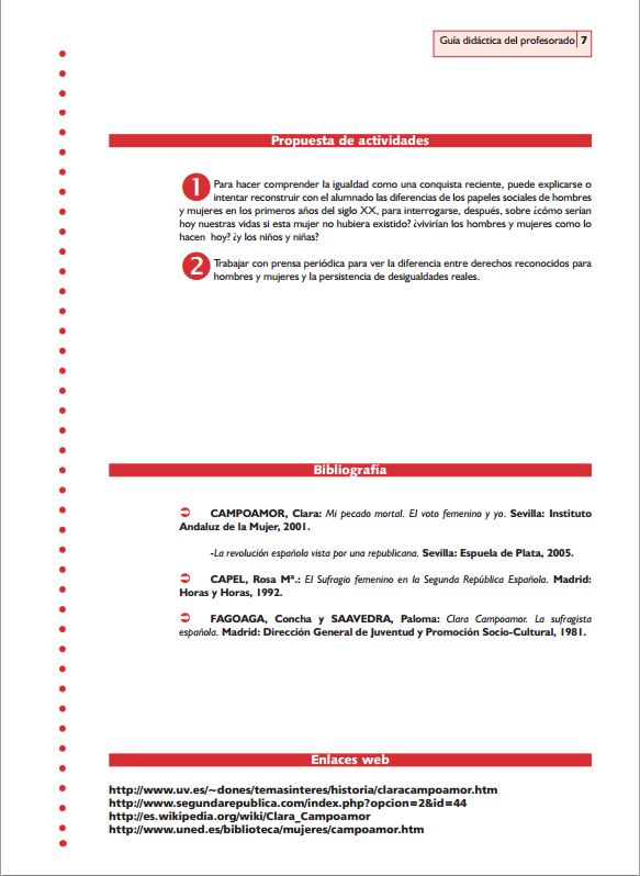 Clara Campoamor es una figura emblemática para el feminismo español y también para el Lyceum Club Femenino. Desde este espacio queremos divulgar su lucha y recordar cómo su empeño logró metas fundamentales para los derechos de la mujer. Para ello, queremos poner a disposición del profesorado de Primaria y Secundaria recursos didácticos que permitan al alumnado familiarizarse con esta figura histórica.