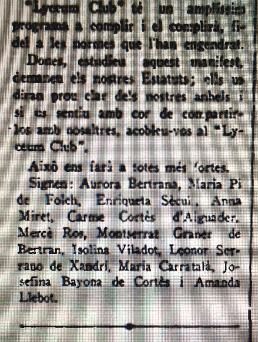 Manifiesto fundacional del Lyceum Club Femenino Barcelona 06 viernes Abr 2018 Tamaño original 851 × 1128 ≈ Deja un comentario